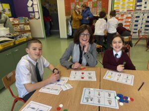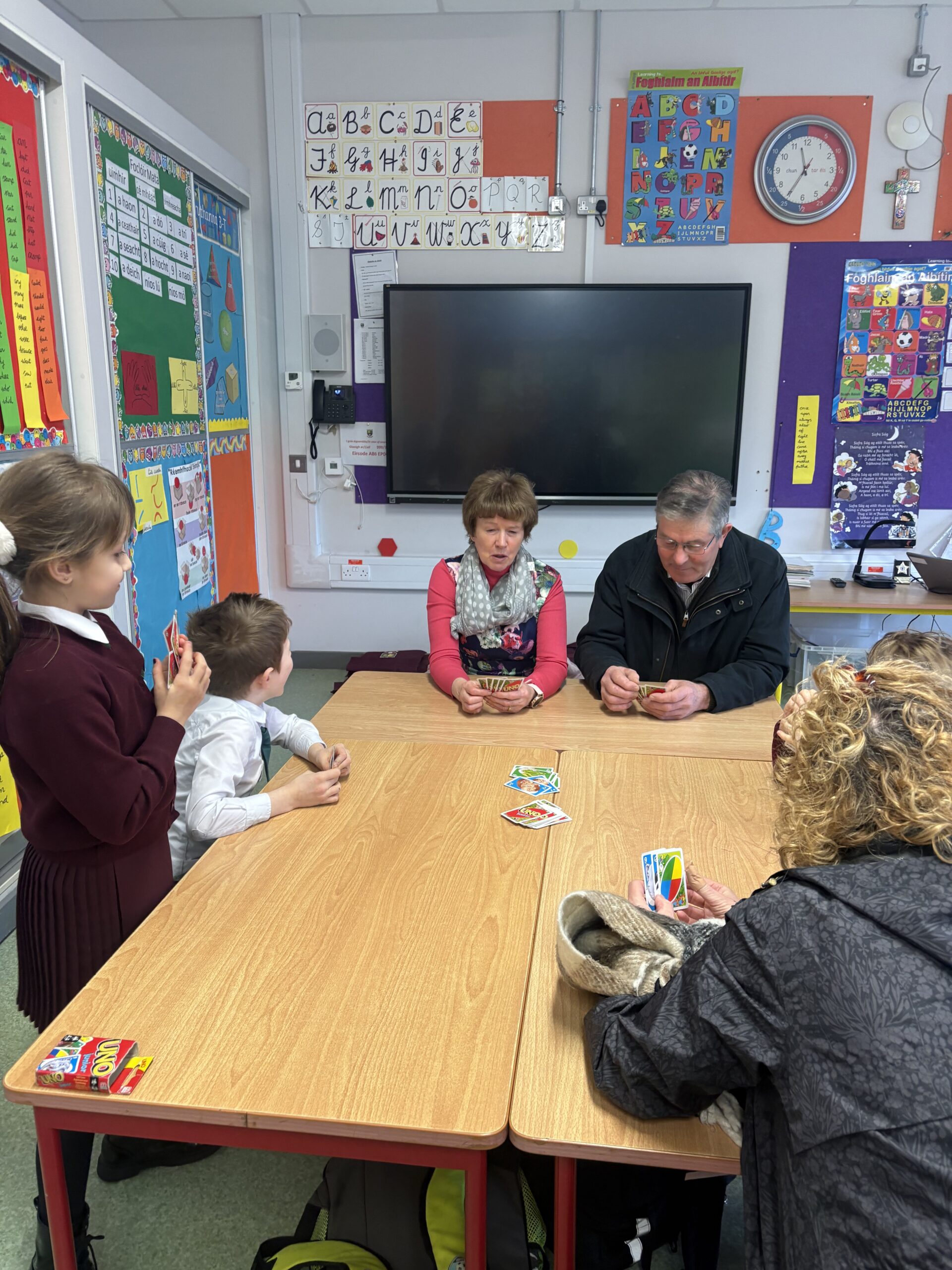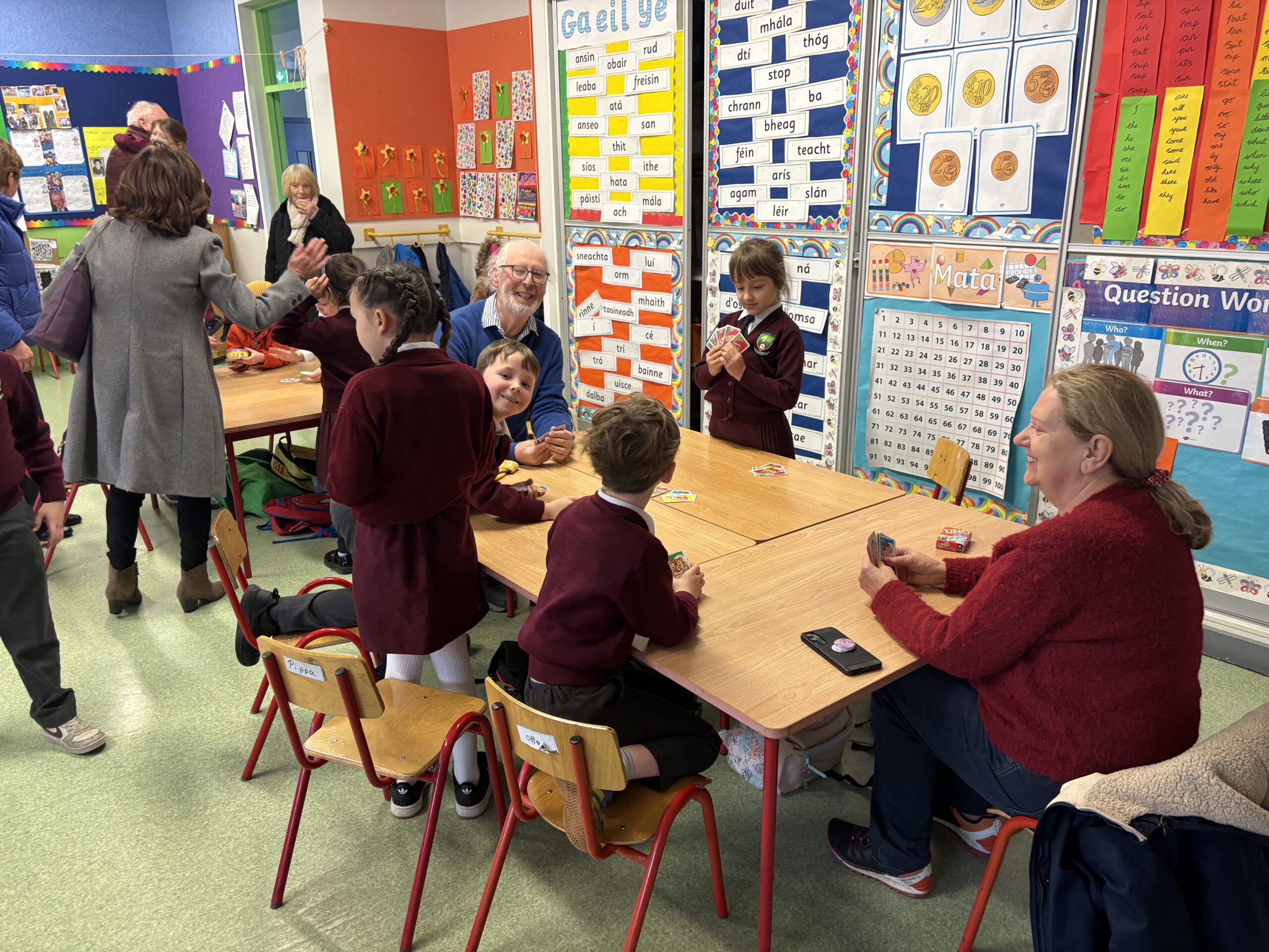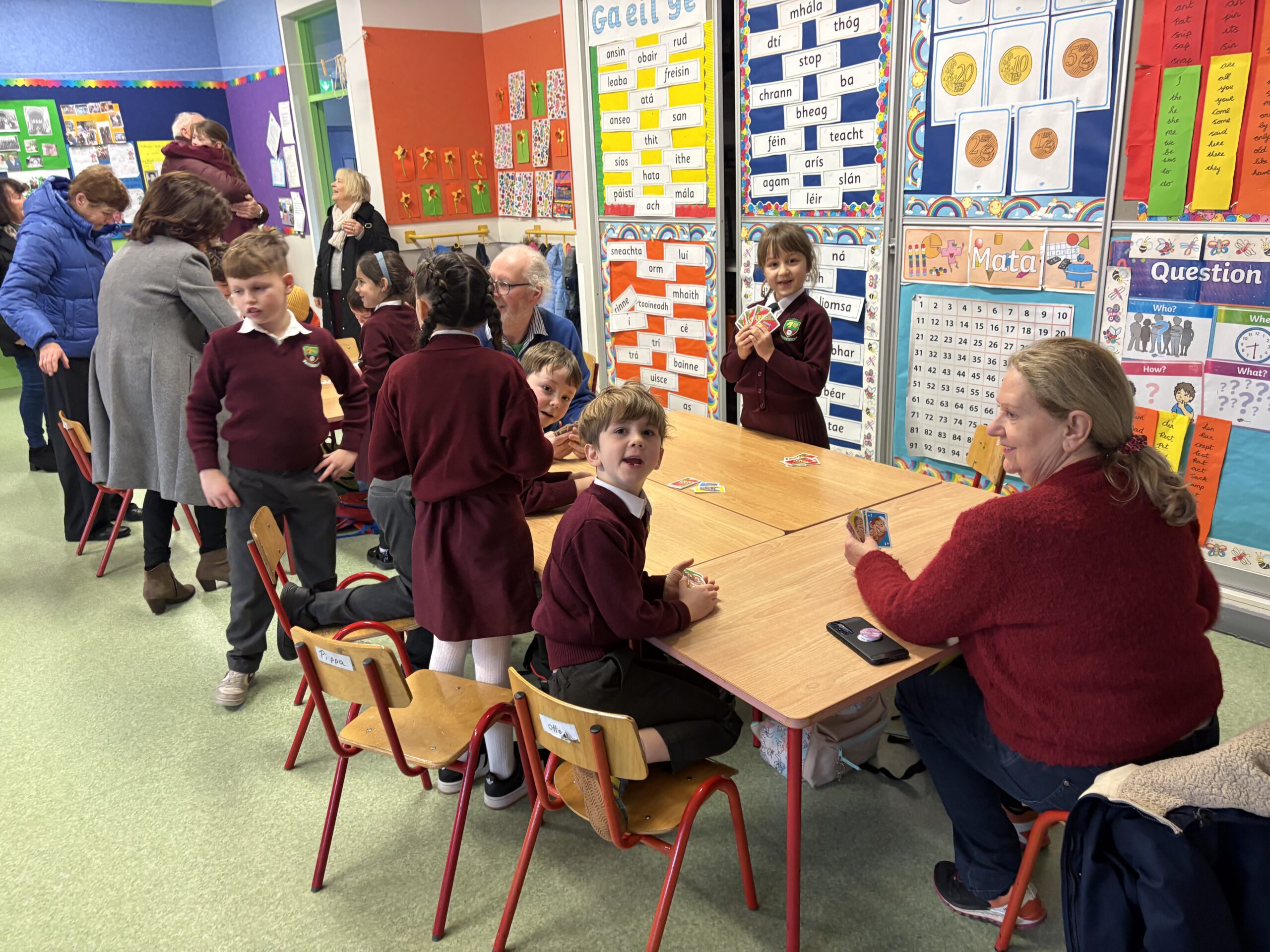 Ansin tháinig na Seantuismitheoirí isteach sa rang chun an obair iontach atá déanta ag na páistí a fheiceáil.